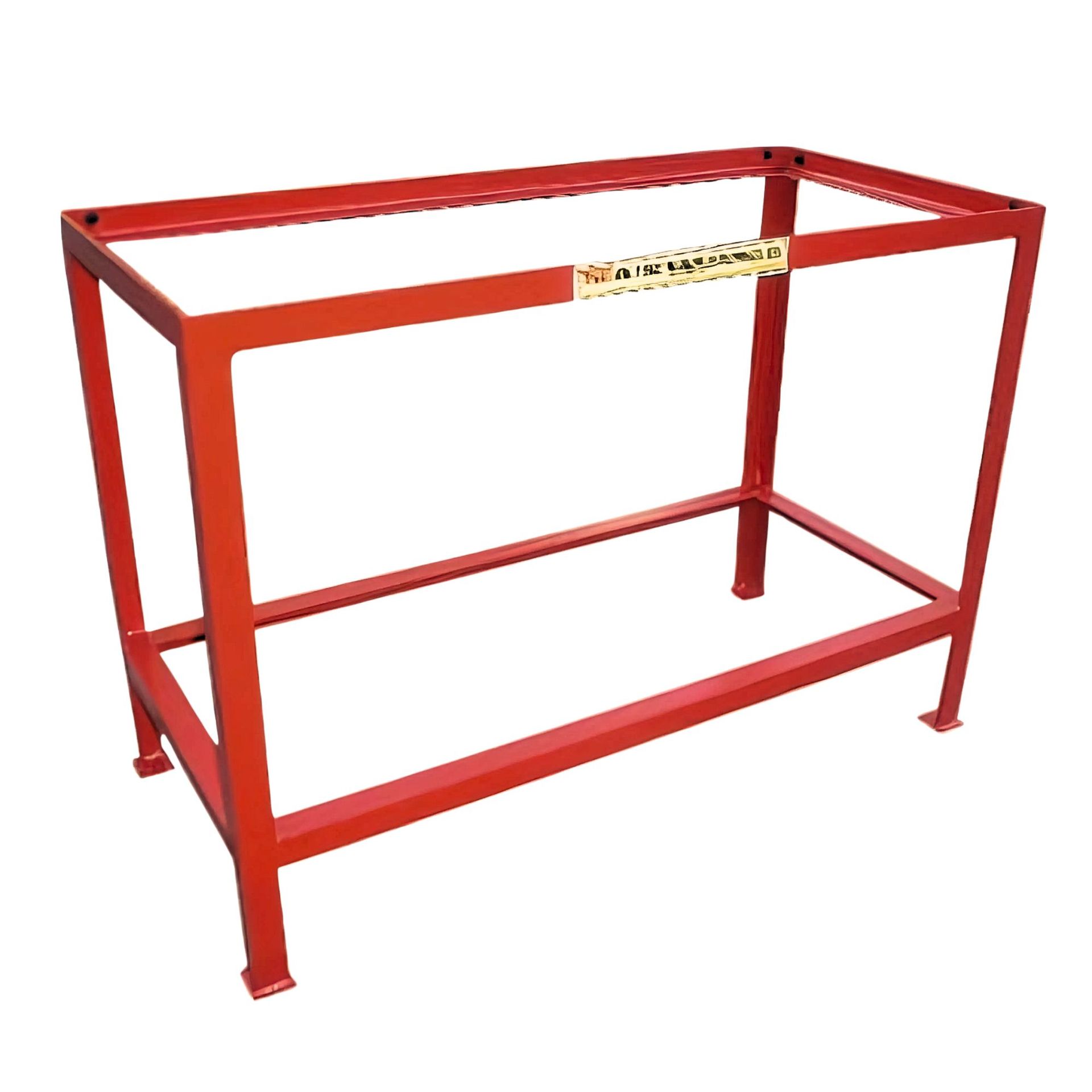 ▸ Made of SAE 1010/20 steel, 1”½, 3/16 thick ▸ Reinforced with 5 mm thick “L” beam ▸ Height of 100 mm (model 11057) or 700 mm (model 23001) ▸ Model 23001 with 4 leveling feet; model 11057 with 2 side members ▸ Electrostatic textured powder coating, red color