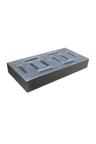 ▸ PE – Polyethylene ▸ Carbon steel painted in gray with black PE grating. ▸ For the carbon steel line, the upper grating remains in high-density polyethylene, preventing sparks when overflowing metal drums.