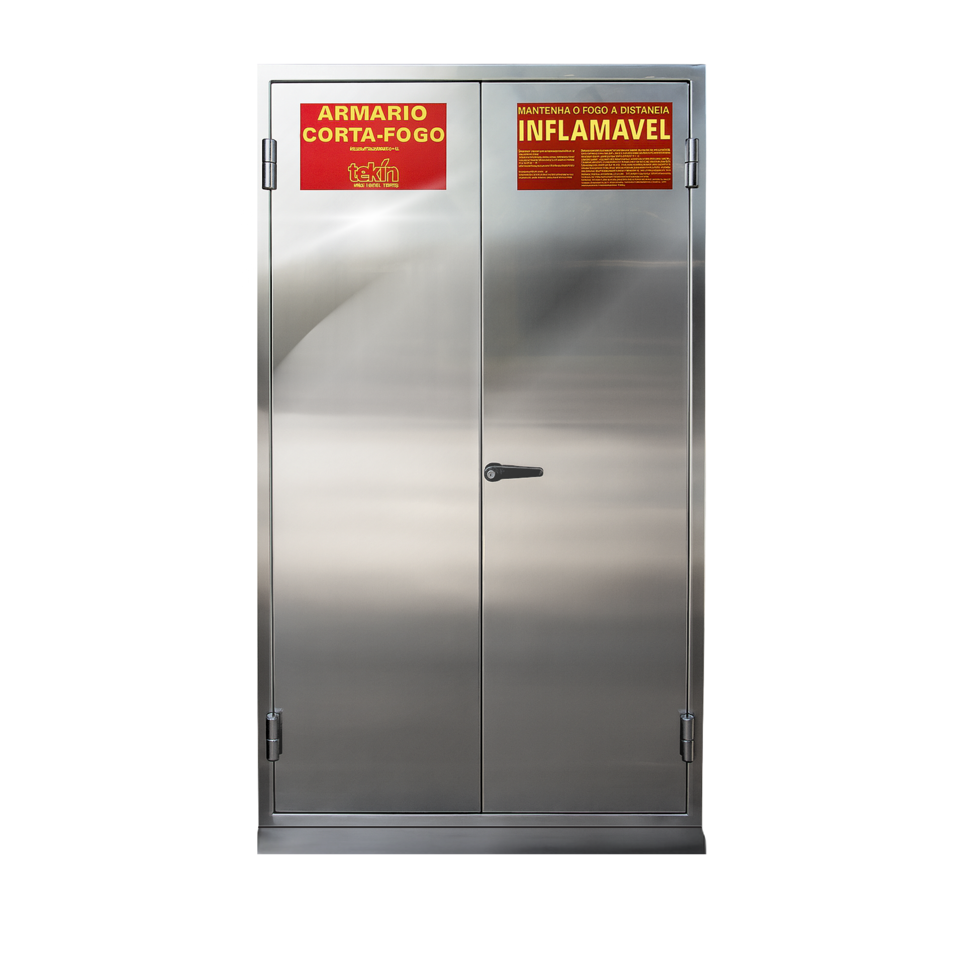 Gabinete ignífugo fabricado en acero inoxidable AISI 304, diseñado para almacenar materiales inflamables, combustibles, pesticidas y corrosivos. La estructura está construida con chapa metálica interna y externa, con una capa de aislamiento duradero en todo su perímetro.